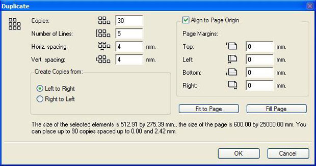 Il nuovo comando Duplica adatta o riempie automaticamente le copie alla pagina del plotter per un miglior utilizzo del materiale.